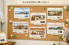 旅行や家族の思い出写真を使って、アルバム制作するコースです。写真の整理、レイアウト、簡単な画像調整まで、作品づくりを通して自然とデジタル操作に慣れていけます。